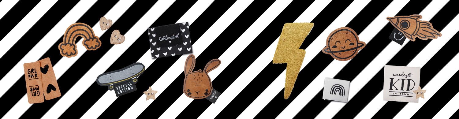 Im Tüddelabo findest du Weblabels, Baumwoll-Labels, Patches, Bügelbilder, Knöpfe, Kunstleder-Labels, Bänder und vieles mehr,... Alles was du brauchst um dein nächstes Projekt zu etwas ganz besonderem zu machen.